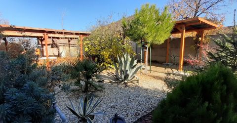 A kert rendezett és gondozott, többféle gyümölcsfával (háromféle barackfa, gránátalma), öntöző berendezéssel, fúrt kúttal, valamint számos pihenési és gazdálkodási lehetőséggel:melléképület kamra funkcióval és kis pincével, ahol a kertben termelt zöldségek kényelmesen tárolhatók, karám, amely lovak tartására is alkalmas, hangulatos kerti kiülő a pihenéshez és családi összejövetelekhez.