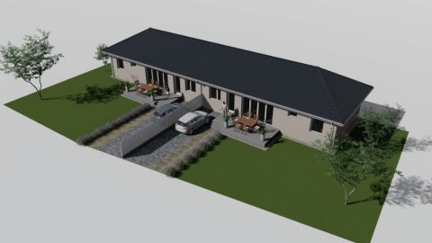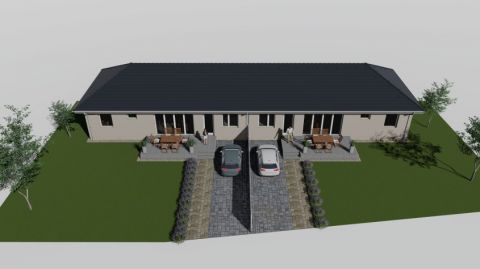 Eladó Kecskemét agglomerációban Helvécián nettó 92,3 nm lakóterű, amerikai konyhás nappali + 3 szobás, 18,6nm terasz, autóbeállóval rendelkező, PRÉMIUM műszaki tartalommal megépülő ÚJ ikerház projektet 340 nm-es telken.