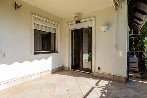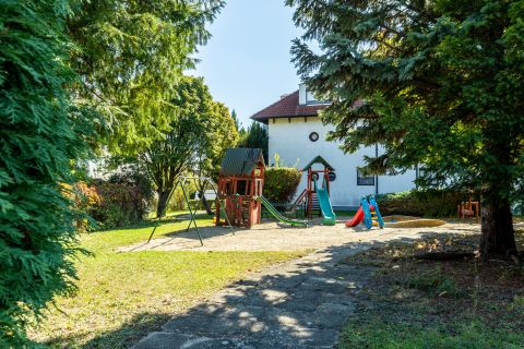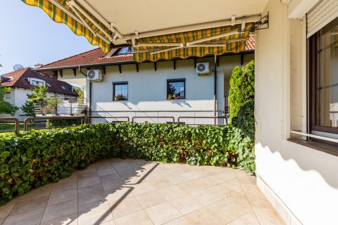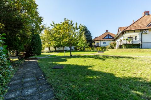 Az 1992-ben, magas minőségben épült 3 szintes ház egy lakóparkban található, melynek hatalmas, közös használatú, fákkal körbeölelt zöld kertje van, privát játszótérrel.