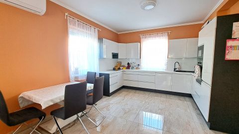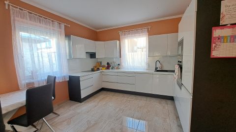 A ház egyik legnagyobb előnye, hogy a mai újépítésű ingatlanokkal szemben valóban tágas, élhető terekkel rendelkezik. A földszinten egy nagy amerikai konyhás nappali kapott helyet, amely közvetlen kijárattal kapcsolódik a teraszhoz és a kerthez ideális közösségi tér a családi mindennapokhoz. Ezen a szinten található továbbá egy nagyméretű szoba, valamint egy kádas fürdőszoba, ami kisgyermekesek számára különösen praktikus.