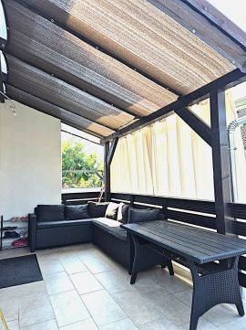 A házhoz tartozó napfényes, kellemes méretű telekrész kiváló lehetőséget biztosít a kertes élet örömeinek megélésére. A fedett terasz tökéletes helyszíne a reggeli kávéknak, közös étkezéseknek vagy a nyári estéknek. Az ingatlan további kényelmi extrája az elektromos autó töltő, amely a jövőbe mutató gondolkodást erősíti.