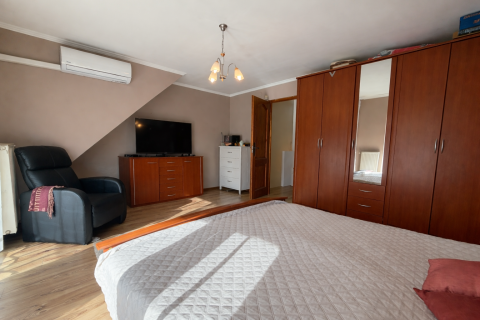 A házhoz tartozik egy 30 m²-es, két autó számára alkalmas garázs, ami parkolásra és tárolásra is kényelmes megoldás.