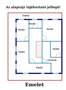 - Emeleten (150 m2 )található 3 hálószoba, 2 fürdőszoba, valamint egy hatalmas gardrób és dolgozó szoba .