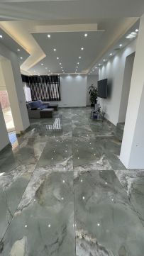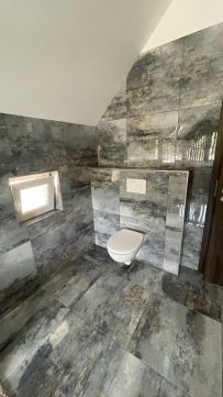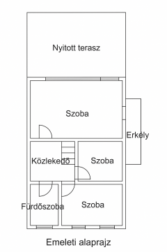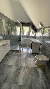 Felső szint: 3 nagyméretű szoba, fürdőszoba, gardróbok