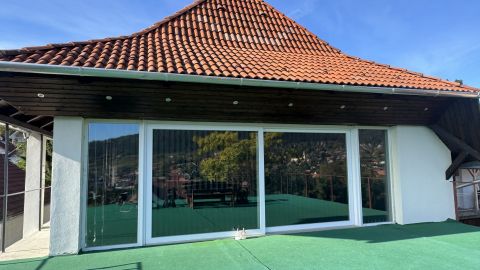 A kétszintes épület nettó 400 m²-es alapterülettel rendelkezik, rendkívül tágas terekkel és lenyűgöző örökpanorámával a környező hegyekre a felső szintről és a teraszról is zavartalan, természetközeli kilátás nyílik. Az ingatlan struktúrája szabadon variálható, így minimális átalakítással számos üzleti vagy lakófunkciós modell megvalósítható.