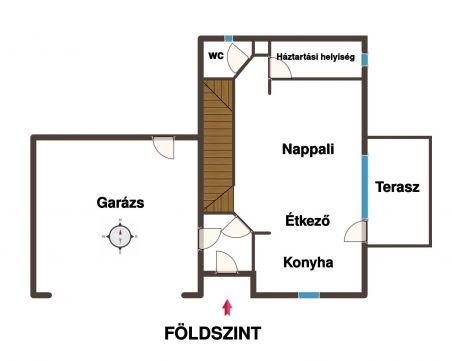 - Nappali + 3 szoba, csak a garázsnál érintkezik a szomszéddal
