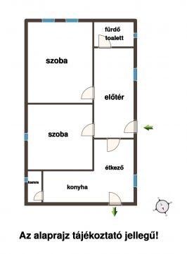 Az ingatlanban található 2 szoba, fürdőszoba toalettel, konyha étkezővel, spájz, előtér.