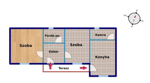 Az ingatlan nyugodt, csendes utcában található, de mégis közel helyezkedik el a központhoz. Buszmegálló 800 méteren belül, boltok, ATM 1 kilométeren belül érhetőek el.