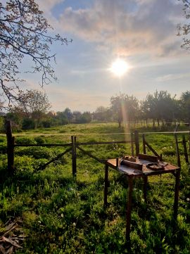 A nagy telek és a nyugodt környezet számos lehetőséget kínál: kertészkedés, pihenés vagy akár kisebb gazdálkodás.