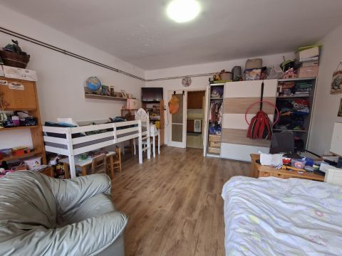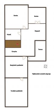 > Szintén a földszinten helyezkedik el egy külön bejáratú, körülbelül 20 m²-es, szobakonyhafürdőszoba elosztású lakrész, amelynek fűtése kályhával megoldott.