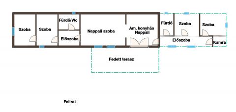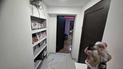 A belső részekben álmennyezet került. A nyílászárók és burkolatok kicserélésre kerültek. A víz és villanyvezetékek is cserére kerltek. Kémény is megtalálható - így akár kályva vagy kandalló fűtésre is alkalmas az ingatlan. Csatorna nincs, viszont 6 m3-es szennyvízakna lett kialakítva, melyből a mostani lakók 24 m3-es aknát fognak kialakítani. Az épületből közvetlen átjárás van egy kb. 40 m2-es ytongból épülő 2 szobás lakrésznek, melyhez fürdőszoba, előszoba és kamra is helyet kapna. Itt a falak már állnak és a fürdőben a vízes blokk kiállások megtörténtek. Az részét képzi a konyhabútor a gépekkel (tűzhely, mikró, hűtő) és a fürdőben a mosdó alatti szekrény.