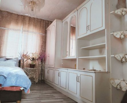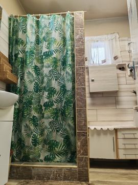 A ház mögött egy kisebb tároló, valamint annak folytatásában egy könnyűszerkezetes melléképület nyújt további tereket. Ez a helyiség konyhaként és étkezőként funkcionál, egy fürdőszoba kialakítása folyamatban van.