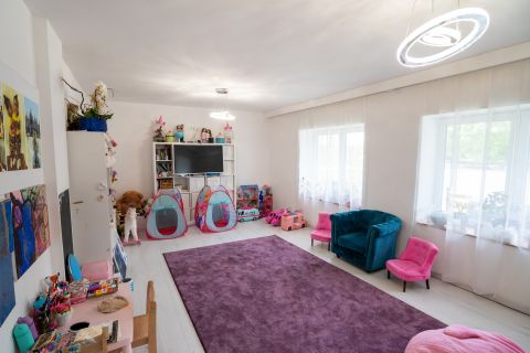 A minden igényt kielégítő családi otthont a tulajdonos megálmodta, majd 2018-ban megvalósította. Az ingatlan 1040 m2-es összközműves sarki telken helyezkedik el, nettó 489 m2-en, két szintre elosztva.