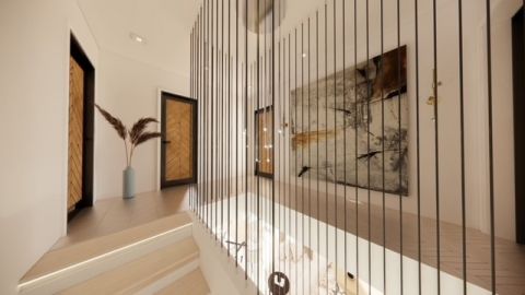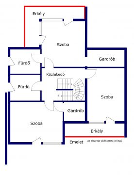 Az emeleten egy kényelmes(16,6 nm) szülői háló (saját fürdővel és gradróbbal), egy másik kényelmes hálószoba (16,83 nm) szintén gardróbbal, illetve egy harmadik háló (17,39 nm) és a hozzájuk tartozó fürdőszoba kapott helyet.