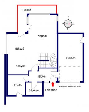 A földszinten az amerikai konyhás nappalin (43 nm) és a kiszolgálóhelyiségeken kívül egy kényelmes, nagy mértű (22 nm) garázst és fürdőszobát is találunk.   ( Igény esetén a garázs helyén egy földszinti, 4. hálószobát is kialakíthatunk, így akár kétgenerációssá is tehetjük otthonunkat.)