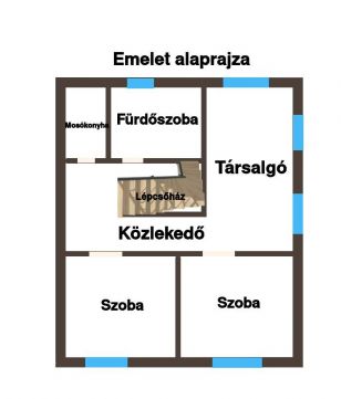 A felső szint lakható állapotú, ahol tágas előtér, fürdőszoba WC-vel, mosókonyha, valamint két kényelmes szoba áll rendelkezésre.