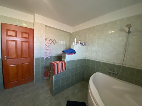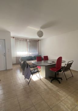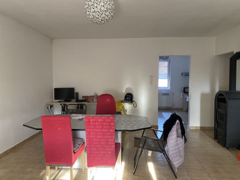5,5 nm.-s fedett teraszról lépünk a tágas nappaliba melyből nyílik a konyha és a kamra. Valamint egy közlekedő ahonnan a sarokkádas, toalettes nagy fürdő és 3 hálószoba nyílik. Szobák laminált padlóval míg a többi helység kerámia lapokkal lett burkolva. 99 nm lakótérrel rendelkezik, meleg víz ellátását gáz cirkó biztosítja.