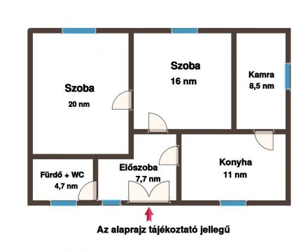 A 68 nm hasznos alapterületű vályog és vegyes falazatú ház egy 2022 nm-es telken helyezkedik el.