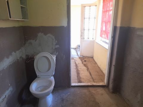 Kialakították a fürdőszobát a tusoló, mosdó, mosógép felállások rendelkezésre állnak valamint a konyhába is bevezetésre került a víz.