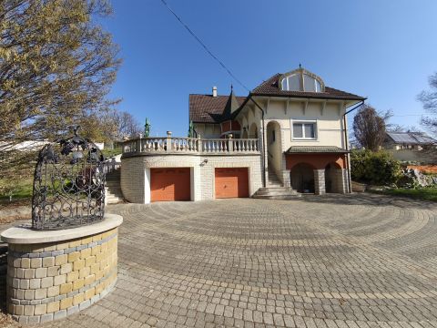 1989-ben épült, építése óta átesett bővítésen is, így érte el jelenlegi formáját. A szinteltolásos kialakítású lakóház tágas lakóterű, amelyhez alagsori szint kapcsolódik garázsokkal és kiszolgáló helyiségekkel. A nagy belmagasságú, napfényes nappali mellett 4 hálószoba található, a szülői háló gardróbbal egészül ki és az egyik szobához szintén tartozik gardrób. A ház része egy hangulatos borospince is, amely hobbihelyiségként is kiválóan használható.