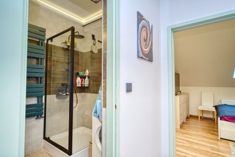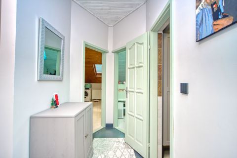 + az emeleten további 3 db hálószoba lett kialakítva, melyből az egyik erkélyes. Ezen kívül egy felújított fürdőszoba várja új tulajdonosát,