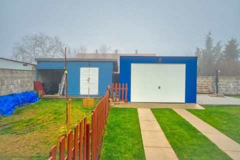 Egy 15 centiméter vastag beton alapra került egy 5,5 m x 4 m méretű konstell lemez garázs. A garázsban egy autó kényelmesen elfér, itt akár elektromos autó töltésére is van lehetőség, emellett pedig további pakolófelület is rendelkezésre áll.