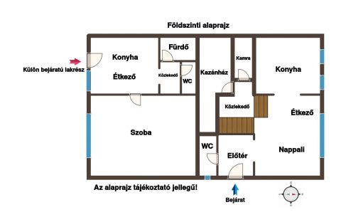 - teljes körűen felújított 32 m²-es külön bejáratú lakrész, mely konyha-étkező, Wc, fürdő és egy szobából áll