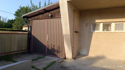 A garázson kivül legalább 4 autó beállási lehetőség, amit 2db oldalt nyíló nagy kapun + egy toló ajtós nagykapun keresztül lehet megközelíteni, illetve külön bejáratú zárható kiskapu is rendelkezésre áll.