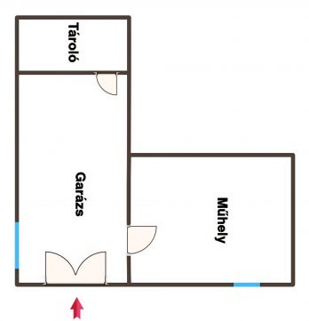 Az alagsorban egy 17 m²-es garázs, továbbá egy műhely és tárolóhelyiség található (összesen kb. 35 m²-en).