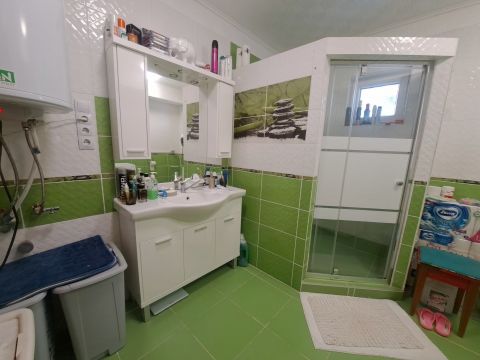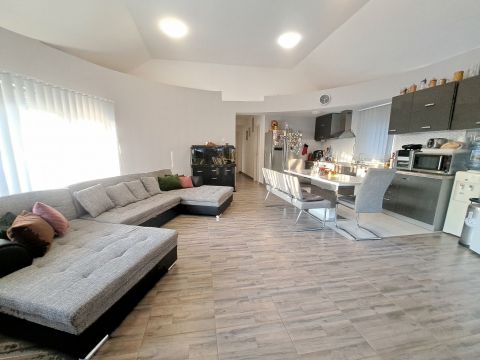 -lakóterület: 80 m² (amerikai konyhás nappali, 2 szoba, spejz, fürdőszoba)