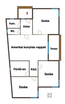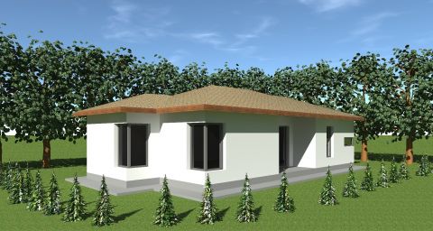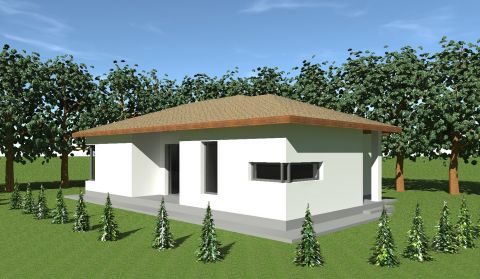 Kialakításra kerül 3 db nagyméretű hálószoba, amerikai konyhás nappali, melyből kijárás van a teraszra, kamra, fürdőszoba-wc, külön wc, közlekedő, előszoba.