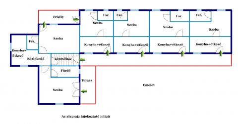 A majd 470 nm-es családi házban 7 külön álló apartman szolgálja ki az ott élők kényelmét. Minden apartman külön fürdőszobával, konyhával, és önálló bejárattal is rendelkezik.