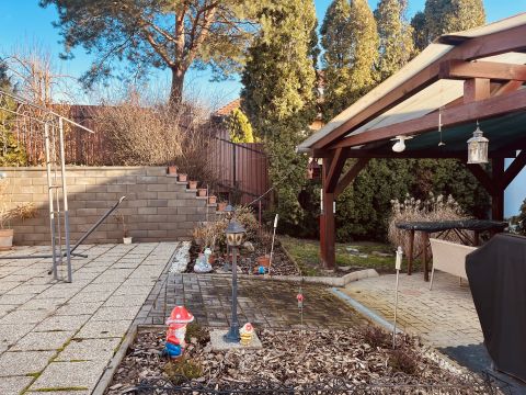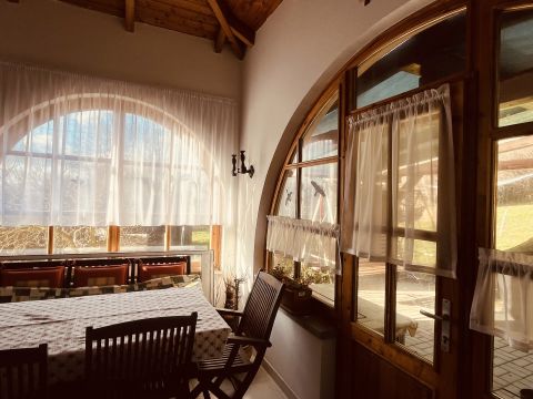 A házhoz tartozó privát kert zöld környezetet és szabadidős lehetőségeket kínál, míg a télikert lehetővé teszi a természet közelségének élvezetét egész évben.