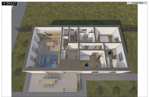 A és B ház épül a telken, melyek társasházi alapító okirattal, önálló helyrajzi számmal fognak rendelkezni.