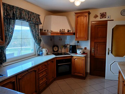 A lakás burkolatai , felületképzései újszerű állapotban vannak. A közlekedők, nappali, konyha és a fürdőszobák lapburkolattal és csempével burkoltak. A szobák szőnyegpadlóval fedettek. A konyha gépesített, jól felszerelt, kapcsolódik az étkezőhöz, nappalihoz. A nappaliból kétszárnyú ajtón lehet kijutni a hátsó kertrészre, burkolt teraszra.
