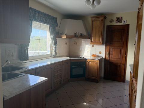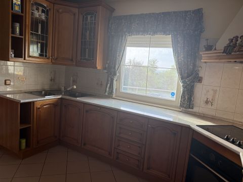 A gépesített, jól felszerelt konyha közvetlen kapcsolatban áll az étkezővel és a nappalival. A nappaliból kétszárnyú ajtón keresztül léphetünk ki a burkolt teraszra, ahonnan lenyűgöző dunakanyari panoráma tárul elénk.