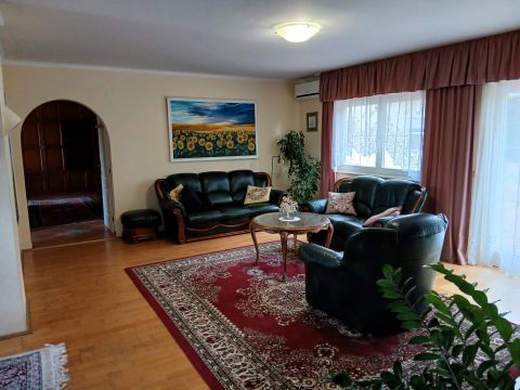 A családiház két utcáról is megközelíthető, a 11-es sz. főút zajától teljesen védett mivel a telek felső harmadában helyezkedik el.
