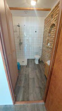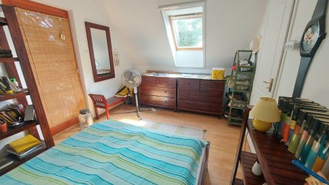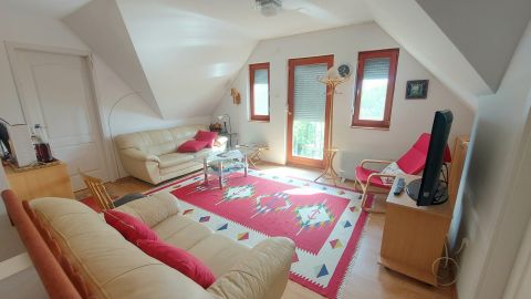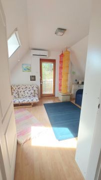 A ház régi alapjaira 23 évvel ezelőtt emeltek még egy szintet, ( az alsó szintet bővítették ) és alakítottak ki 3 hálót, hallrészt és 2 fürdőt, wc-kkel. Az EMELETen található 2 háló ( az egyik klímás), nappali és egy zuhanyzó-wc-vel, és egy nyugati tájolású erkély is. A FÖLDSZINTen étkező+konyha, kamra, zuhanyzó-wc-vel és egy hálószoba található! A ház oldalába építtettek egy külön, 32 nm-es LAKRÉSZt, tágas zuhanyzóval, wc-vel.