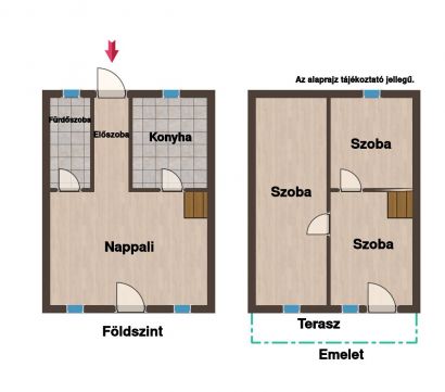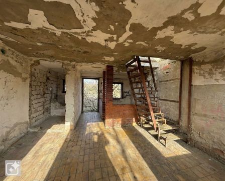 A telken egy 46 m²-es, kétszintes, téglából épült ház található. Az épület jelenleg lakhatatlan állapotú, felújítást igényel, ugyanakkor szerkezetileg alkalmas lehet helyreállításra.