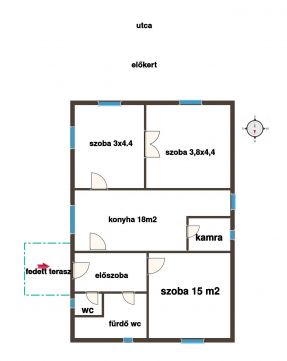 Az utcáról lehet beállni az épülettől külön álló garázsba. A kertben elegendő hely van, hogy az új tulajdonos kialakíthasson pihenő kertet és igény szerint veteményest is.