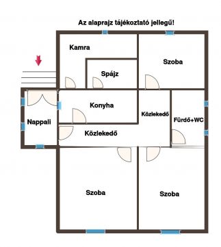 Az 1980-as években épült 91nm-es tégla falazatú ingatlan 1416 nm-es telken található. Az ingatlanban található nappali, három külön bejáratú szoba, közlekedő, konyha, spájz, fürdőszoba + WC, valamint a tetőtér is beépíthető. A fűtésről kályha gondoskodik. A családi ház parkettás és járólapos burkolattal van ellátva. Nyílászárói fából készültek és redőnnyel védettek.