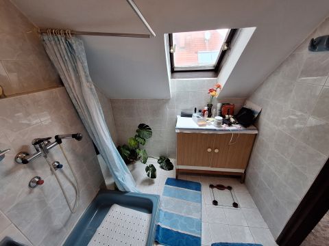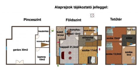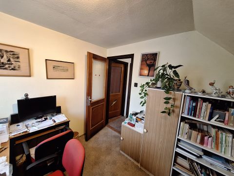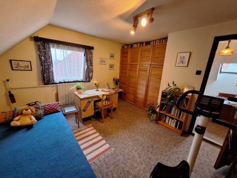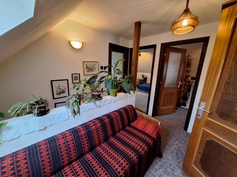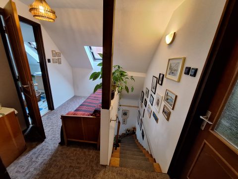 A tetőtérbe felérve egy apró, de hangulatos előtérbe jutunk, amit tetőablak világít meg. Belmagasága: 2,4 méter. Innen nyílnak külön-külön a padlószőnyeggel burkolt, napfényes szobák. Amiből kettő DNY-i tájolású hálószobaként, a harmadik DK-re néző dolgozószobaként funkcionál. A tetőtéri hangulatos fürdőszobában tus, mosdó és illemhely áll rendelkezésre.
