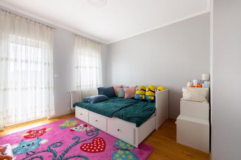 A kétszintes, elegáns elrendezésű otthon tágas, napfényben gazdag terekkel várja új tulajdonosát: