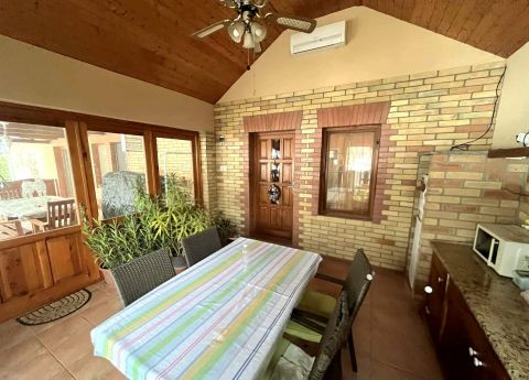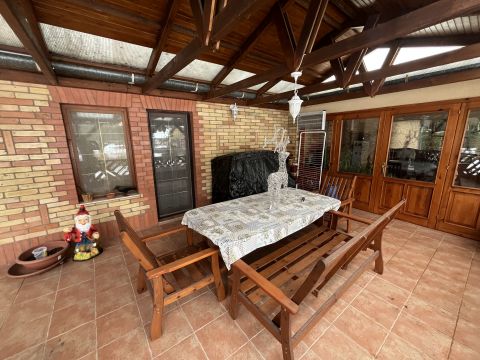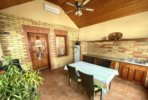 A 140nm alapterületű családi ház folyamatos korszerűsítéseken esett át évről évre. A galériás nappali-konyha-étkező, a két hálószoba, a tágas hall és a hozzájuk tartozó vizesblokkok, tárolók és közlekedők tökéletes életteret biztosítanak a leendő tulajdonos családja részére. Az összenyitható, részben fedett, részben teljesen zárt, összesen több mint 50nm nagyságú terasz tökéletes helyszíne lehet családi és baráti összejöveteleknek. Az élményt és a jó hangulatot fokozza a terasz melletti szaletli és kemence.