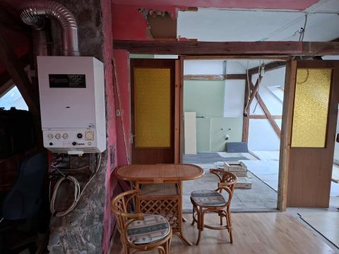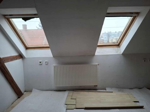 A tetőtérben elkezdett munkálatokat folytatva, a saját ízlése szerint kialakítható lakótér várja.