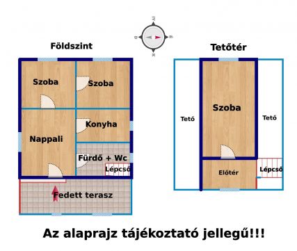 - tetőtéri szoba jelenleg a fürdőből érhető el, de külön bejárat is kialakítható