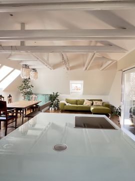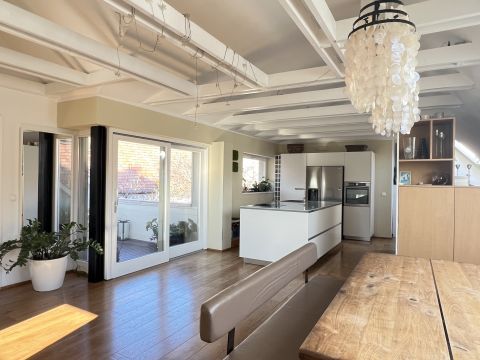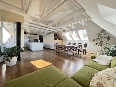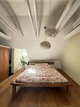 Tetőtéri lakás: külön bejáratú, tágas luxuslakás 3 hálószobával és 2 modern fürdőszobával; a panorámás teraszról lenyűgöző kilátás nyílik a Templomdombra
