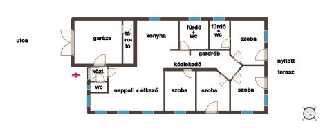 * **38 nm-es, nagyméretű terasz**, amely több helyiségből közvetlenül elérhető
