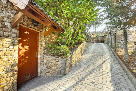 A ház teljes alapterülete 300 m², melyből 227 m² lakótér, a fennmaradó rész garázs, pince és kiszolgálóhelyiségek. A téglaépítésű ingatlan külső homlokzatát és kerítését egyedi, csobánkai kőburkolat díszíti, ami eleganciát és időtállóságot kölcsönöz a háznak.