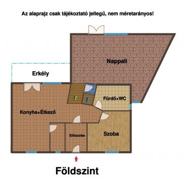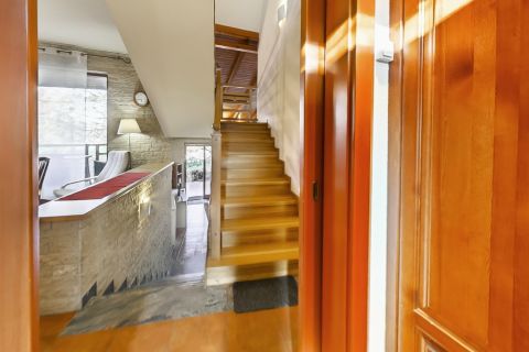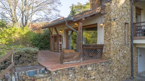 A földszinten egy tágas nappali található, ahová gránitlépcső vezet. Innen nyílik a konyha-étkező, kamra, vendégszoba és egy külön fürdőszoba. A nappalihoz és az étkezőhöz több fedett terasz is kapcsolódik, ahonnan élvezhető a gyönyörű panoráma.